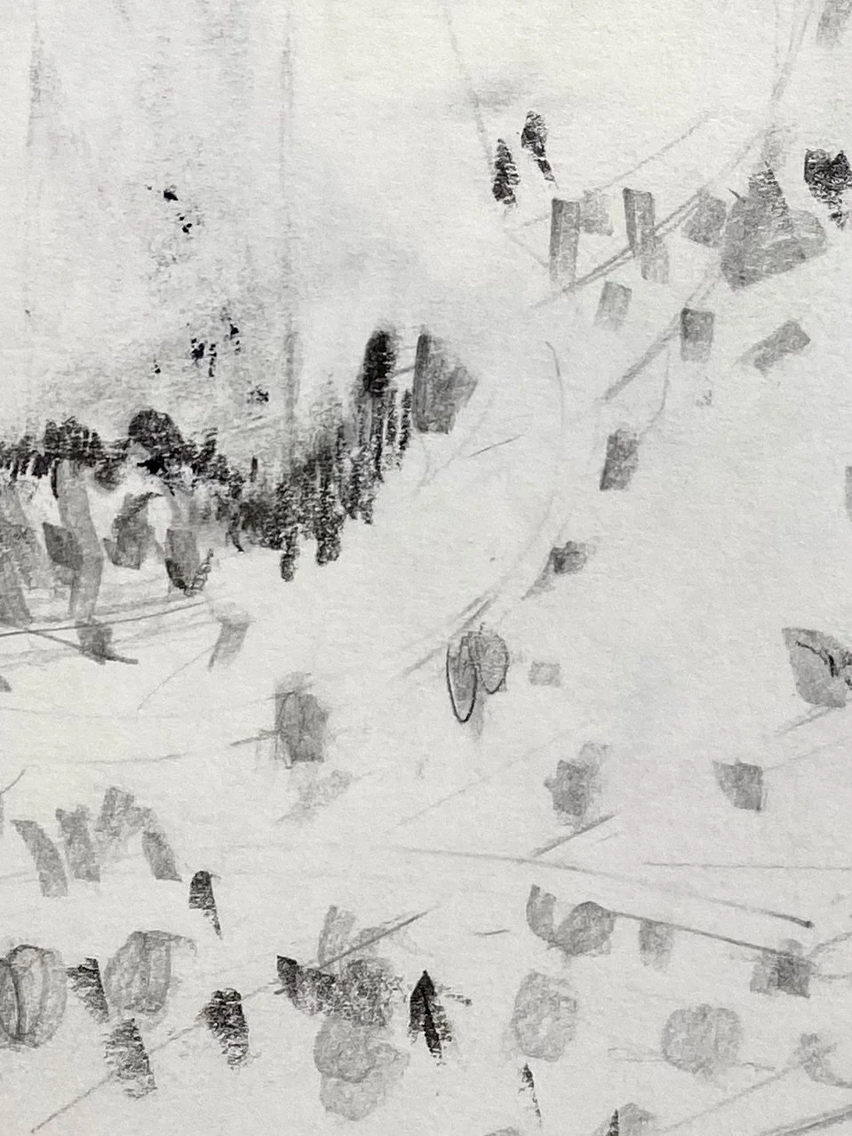 Remember this is about LOOKING, not about the actual drawing you produce. It will be far easier to make separate marks for the different textures rather than trying to make a drawing of the whole area. Think of it as making notes, not as making a drawing.