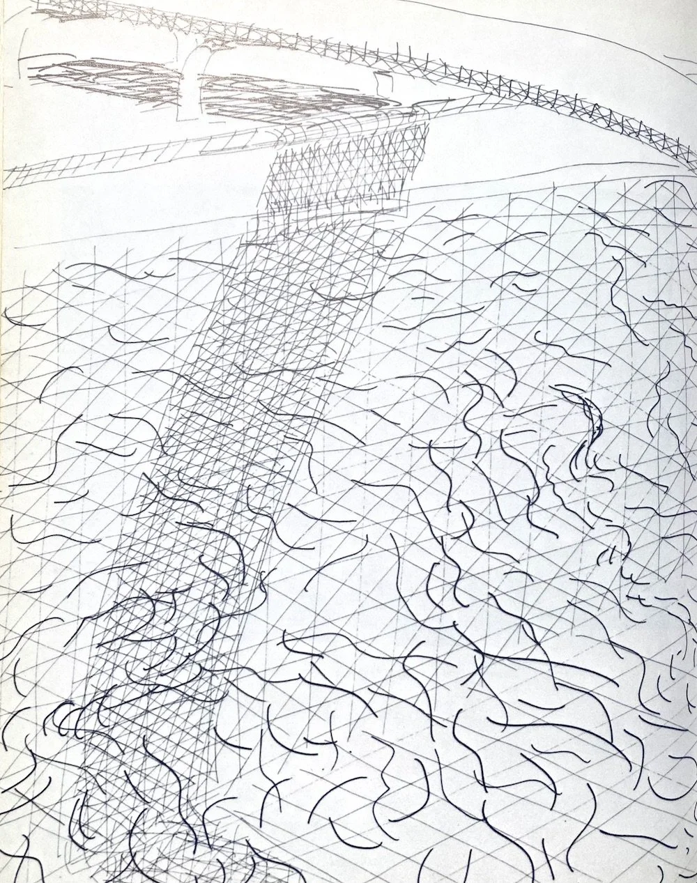 There were obviously more drawings between these preliminary sketches and the finished painting, shown above! Who would have. thought these first scribbles would lead to such a ‘clean’ finished painting? This one really makes the point that sketching is more about the looking than what appears on the paper. (Click on the images to view larger versions).