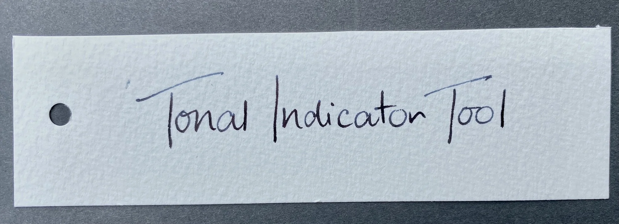 Once upon a time I was chatting away on the phone and fiddling with bits of paper on the table in front of me. One of them had a hole in it, made with the office hole punch. I realised that by peering through the hole with one eye closed I could easily assess the tones of the things around me. The Tonal Indicator Tool was born! Goodness knows what the phone call was about; apologies are probably still due to the person at the other end.